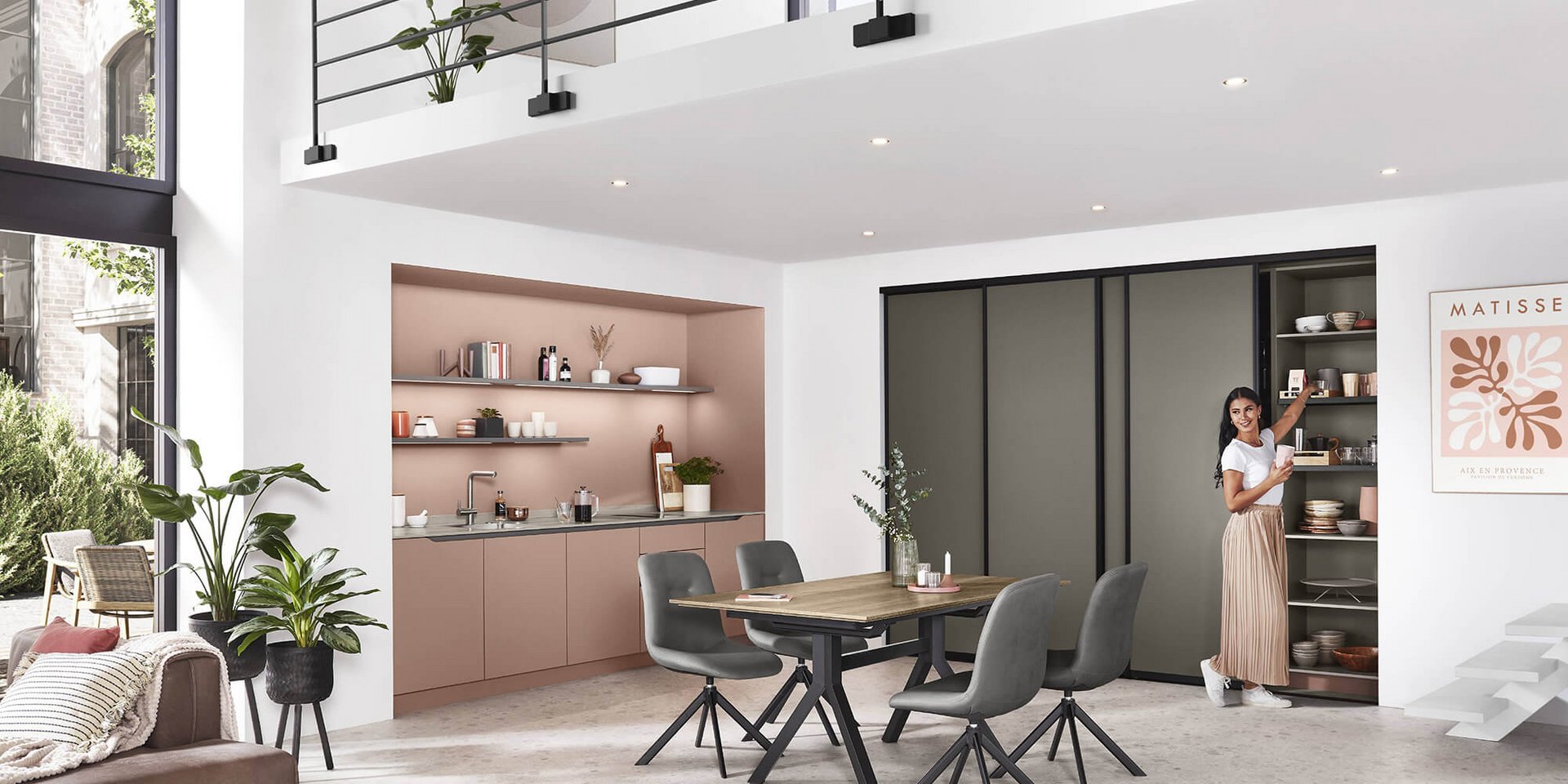 Ein weiteres herausragendes Merkmal sind die Gleittürsysteme, die in drei verschiedenen Farben mit Anti-Fingerprint-Eigenschaften erhältlich sind. Diese bieten eine breite Palette von Optionen für den individuellen Einsatz und ermöglichen eine effektive Raumnutzung. Gleittüren sind wahre Multitalente, da sie nicht nur Platz sparen, sondern auch eine großzügige Optik schaffen. Außerhalb der Küche können sie dazu verwendet werden, Räume abzutrennen und diskret Funktionsbereiche wie Regale oder Arbeitsplätze zu verbergen.